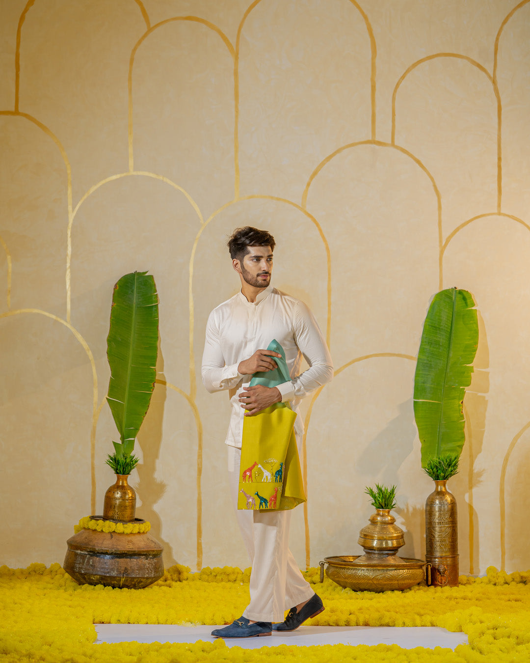 Beneath the bright canopy of a festive gathering, where tradition meets contemporary flair, this plain white vegan silk shirt paired with parallel pants embodies simplicity at its finest. Like a blank canvas, it offers the elegance of understated charm, allowing the wearer to blend effortlessly into any celebration, yet stand out with a quiet sophistication.